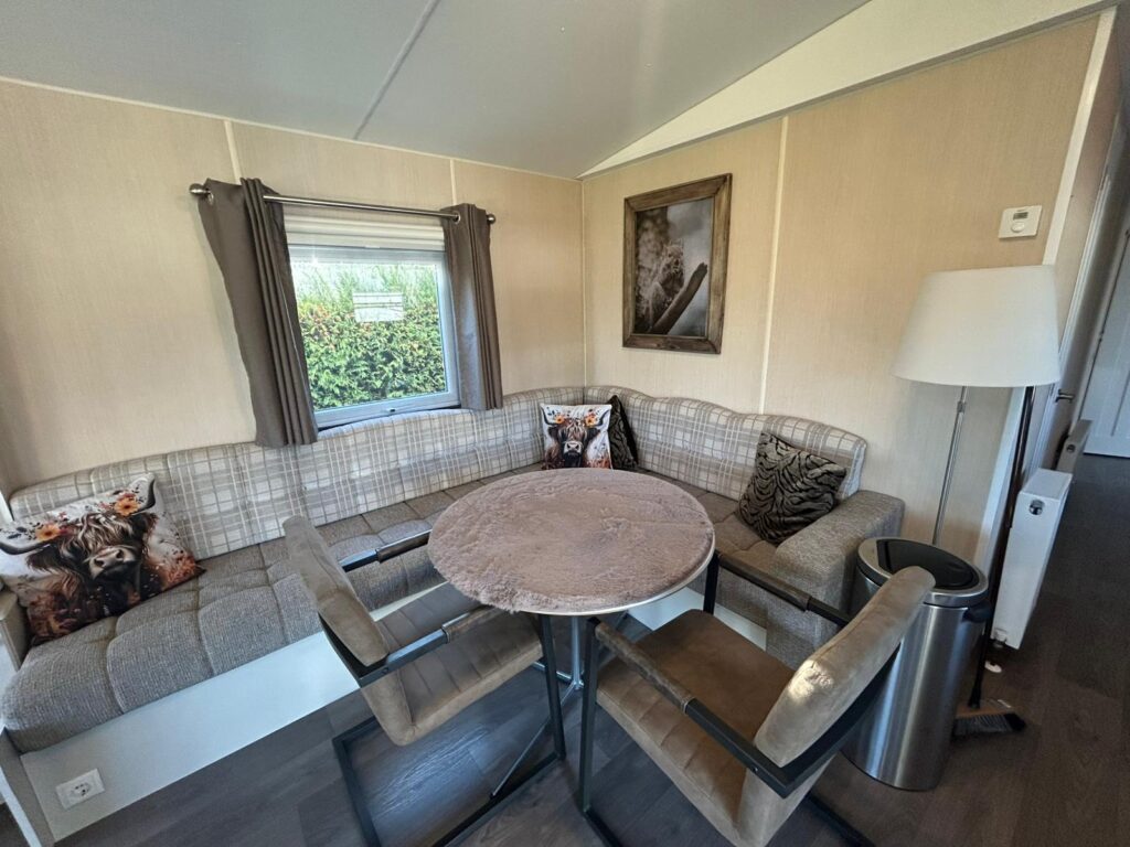 Alle inventaris blijft achter, waardoor het chalet volledig instapklaar is. U hoeft dus geen extra investeringen te doen in meubels of basisinrichting. De indeling is geschikt voor vier personen en het chalet beschikt bovendien over een apart toilet, wat extra comfort en privacy biedt.