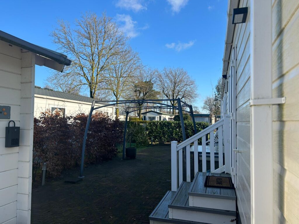 Buiten is de ligging een duidelijk pluspunt. Chalet B13 heeft een eigen parkeerplaats en ligt direct aan een voetbalveldje. Door de toegang aan beide kanten is het chalet goed bereikbaar en ideaal voor gezinnen met kinderen die graag dichtbij speelvoorzieningen willen zitten, zonder in te leveren op rust en gemak.