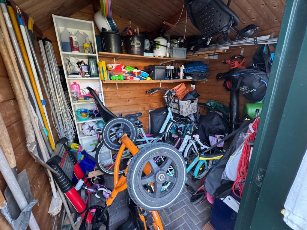 Enkele persoonlijke zaken worden door de huidige eigenaar meegenomen: de televisie, soundbar, airfryer, de tuinset met stoelen en een deel van het gereedschap. Alles wat essentieel is voor een comfortabel verblijf blijft echter achter.