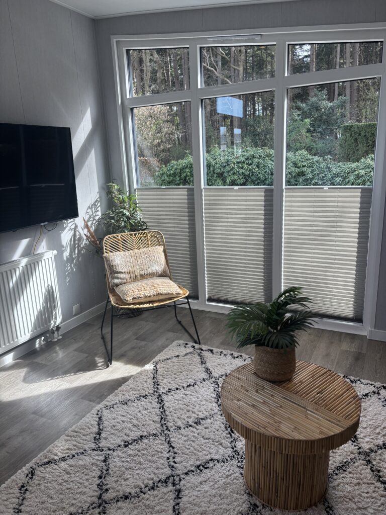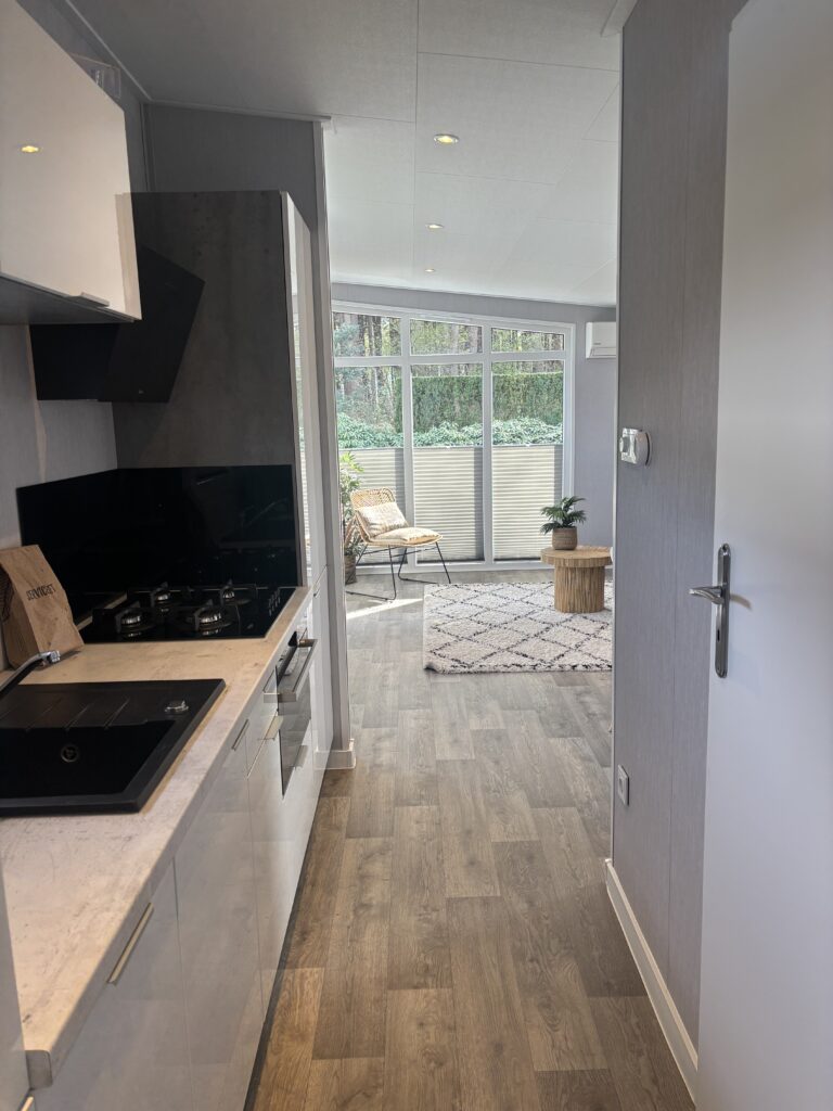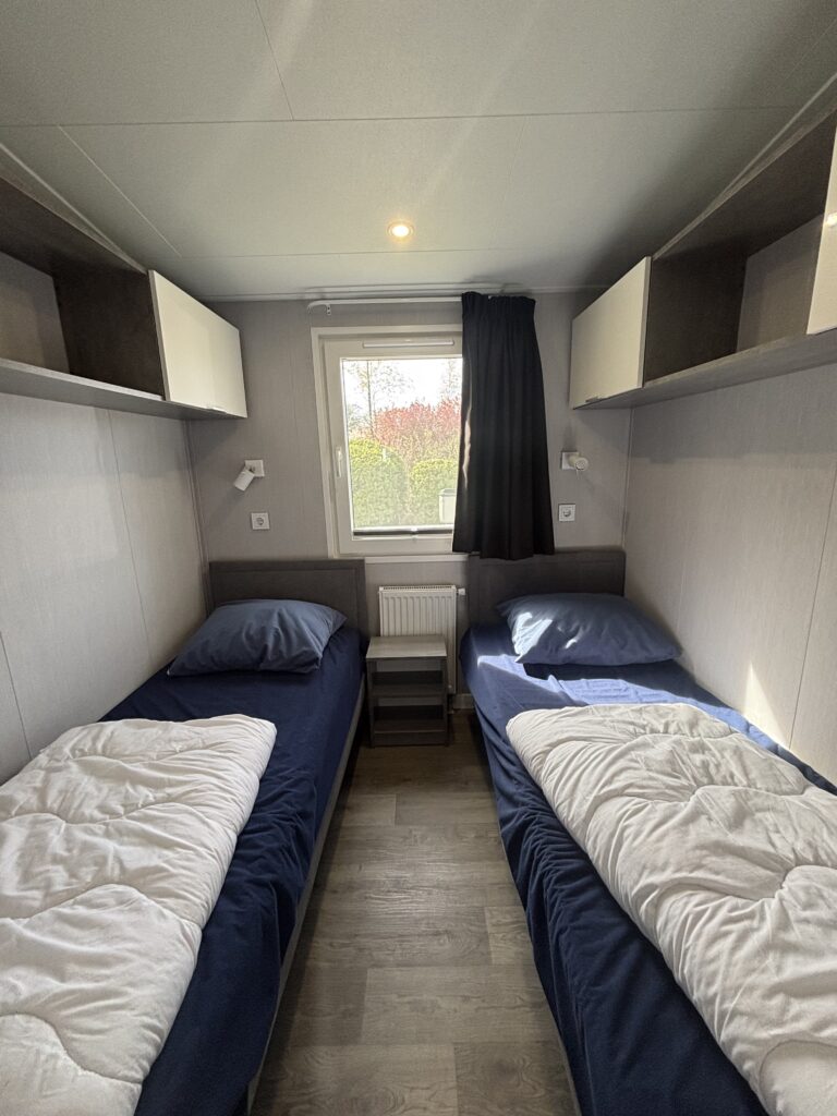 Het chalet is geschikt voor 4 personen en beschikt over 2 slaapkamers. In het woongedeelte is een airco geplaatst (2026), terwijl de rest van het chalet wordt verwarmd via cv. Dat klinkt misschien als een detail, maar het zegt iets over hoe er is nagedacht over gebruik: comfortabel in de zomer waar je leeft, stabiel en betrouwbaar in de rest van het chalet.